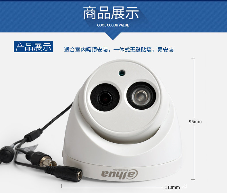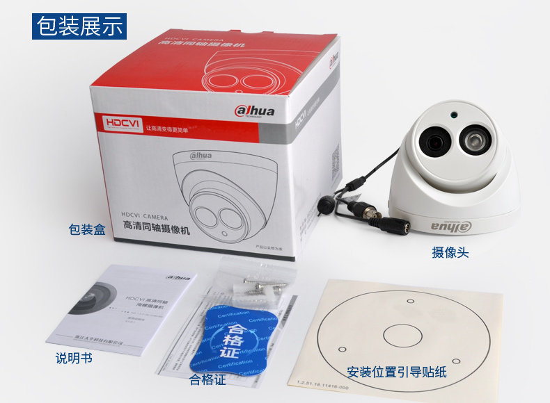 Dahua 720 line analog camera AHD can switch coaxial 1 million indoor night vision camera 1120E
