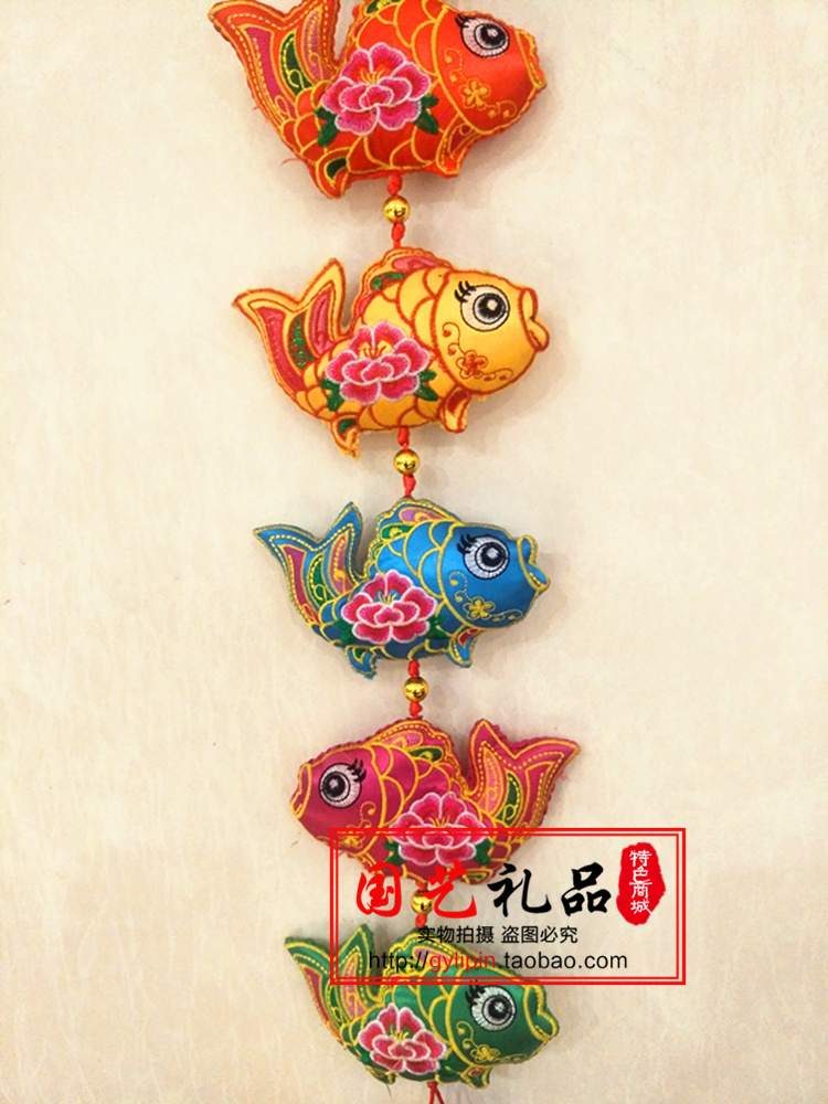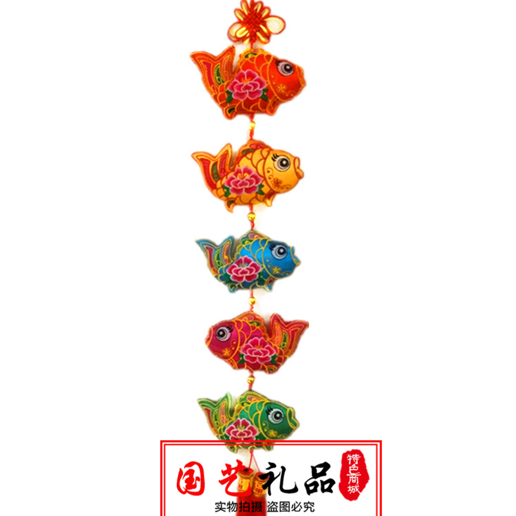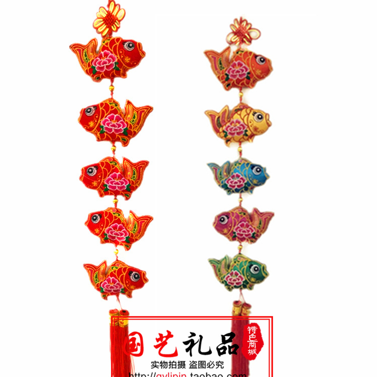 Chinese knot embroidered fish string lotus fish string embroidery cloth art Spring Festival sends gift cloth fish home hanging decoration lotus flower