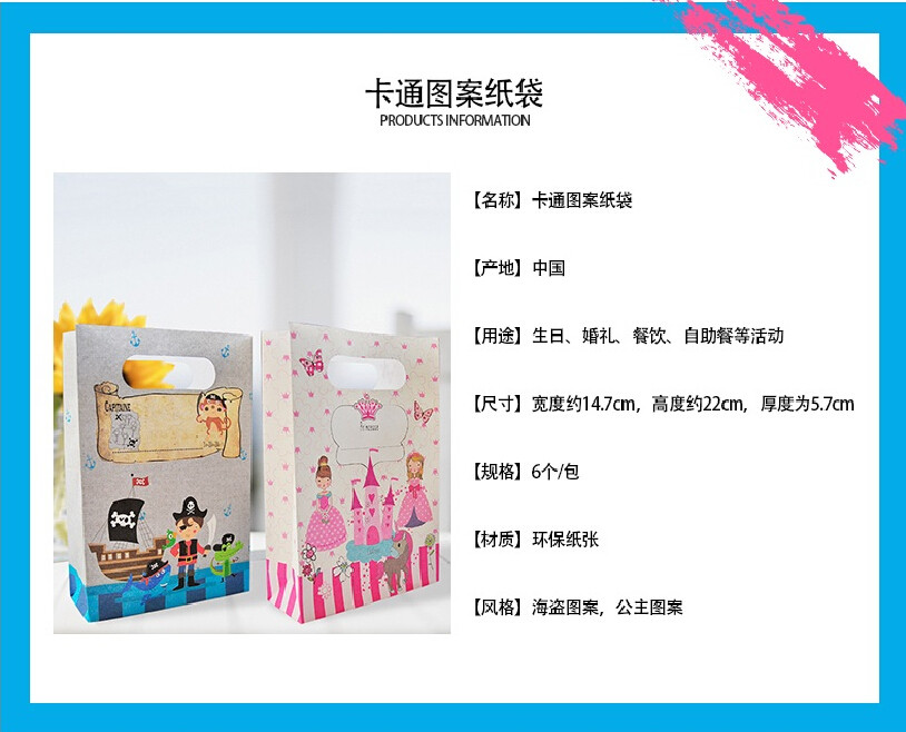 Pink Cartoon Princess Themed Children Birthday Party Girl Gift Bag Paper Bag Gift Packing Bag Hand Trumpet