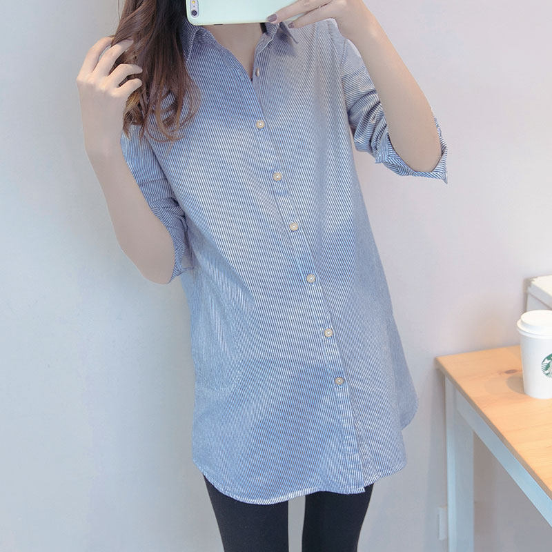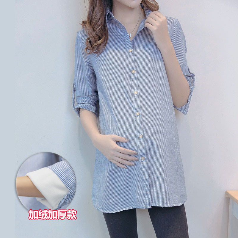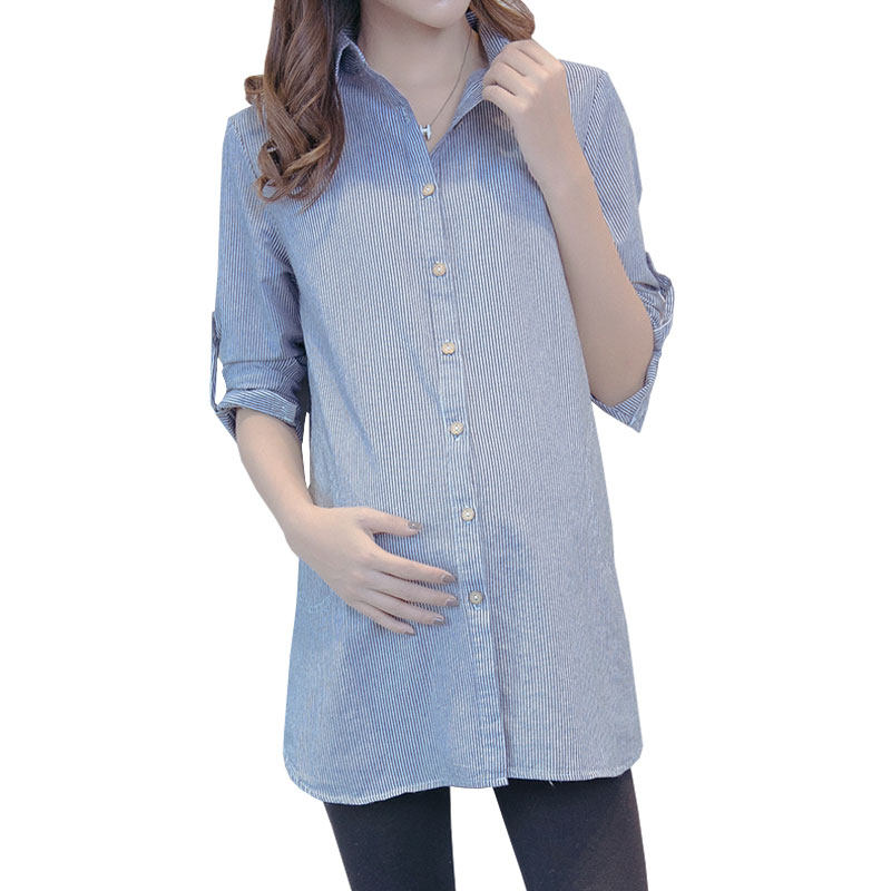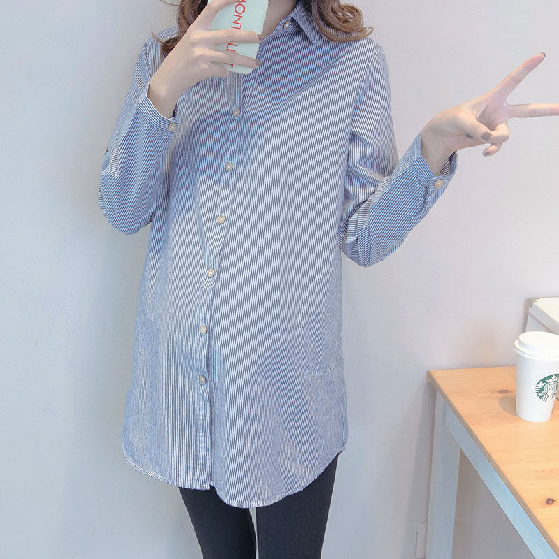 2022 Autumn Dress New Professional Spring Autumn Dress Striped Pregnant Women's Shirt With Long Version Of Undercoat Shirt Gestation Blouse