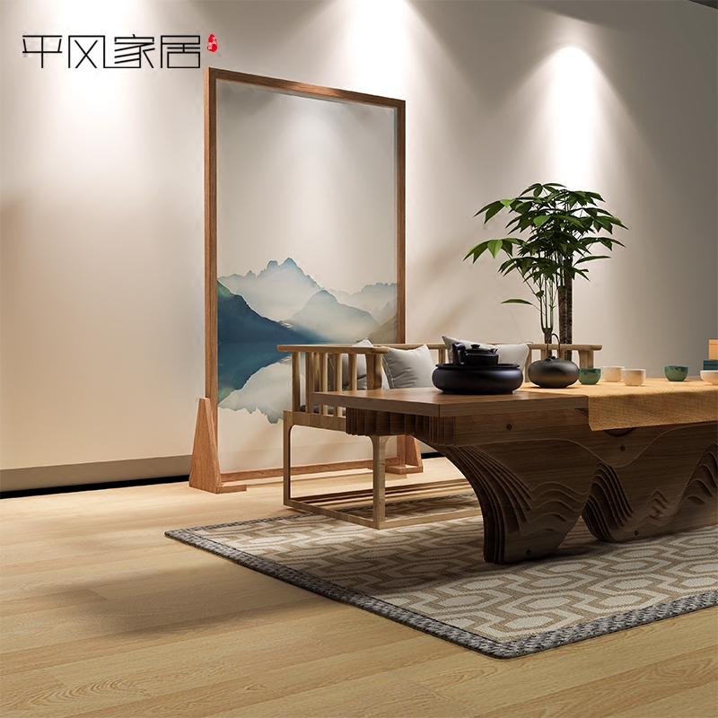 New Chinese style simple screen partition Living room fashion office bedroom Solid wood seat screen movable freehand landscape fabric