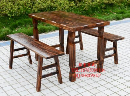 Charcoal Burning Crafts Solid Wood Table Dining Chairs Combo Hotel Dining Room Outdoor Leisure Farm Casual Leisure Long Table And Chairs