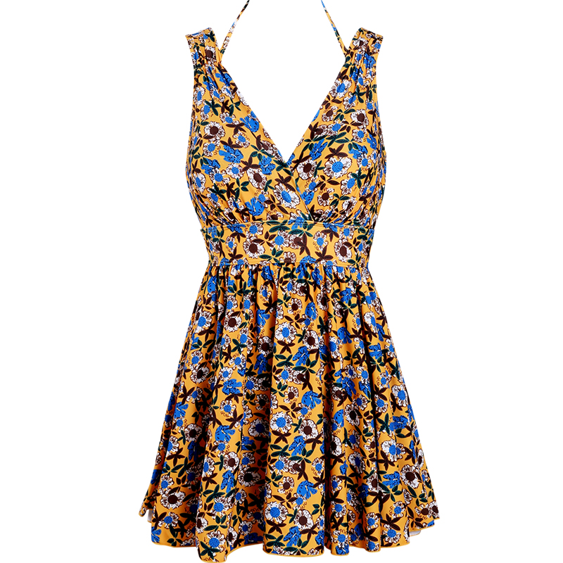 Little daisy swimsuit women's one-piece conservative skirt bathing hot spring cover belly show thin chest gathered Korean sexy swimming suit