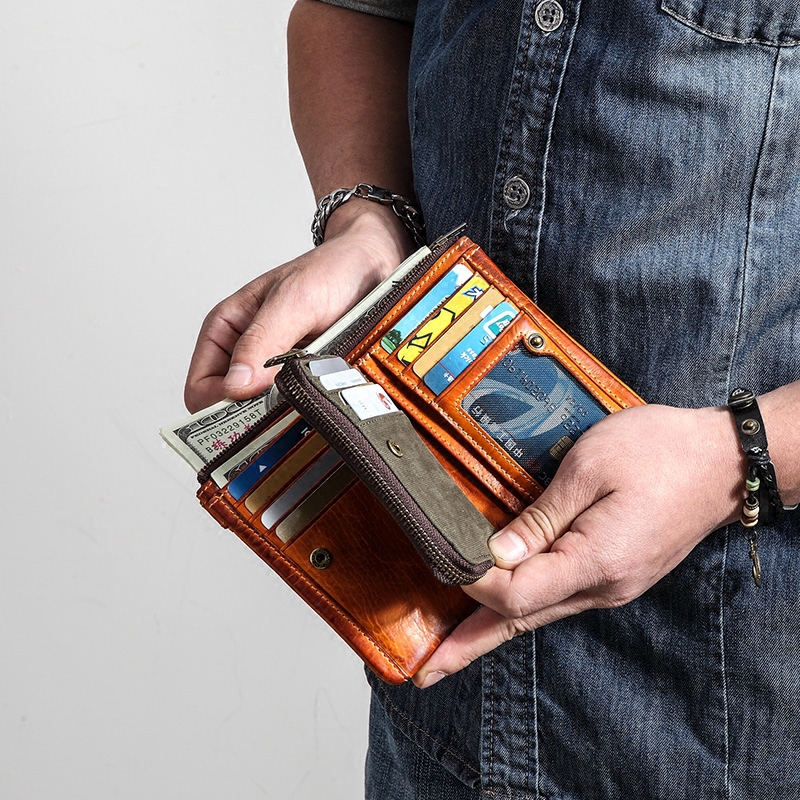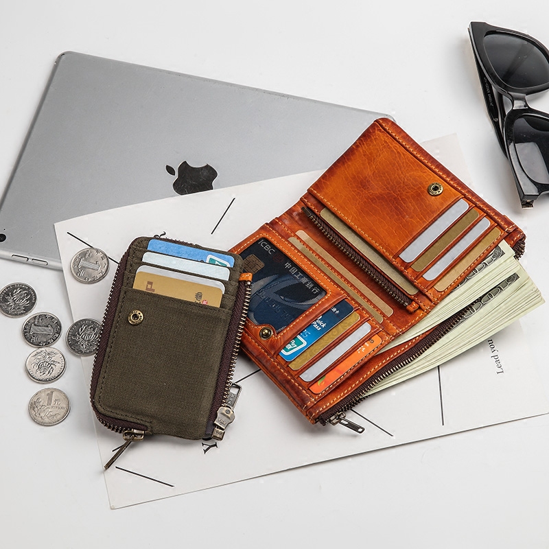 Wallet Male Short Leather Wallet Money Clip Student Retro Made of Old Laced Zero Wallet Vertical Bull Leather Men's Leather Wallet