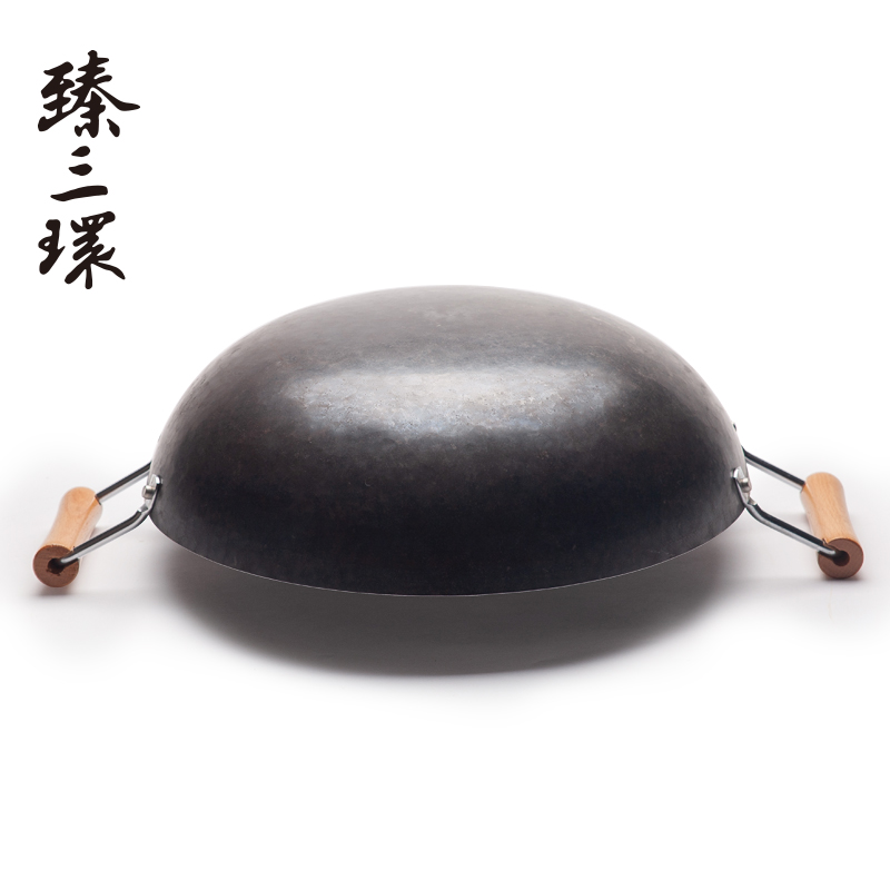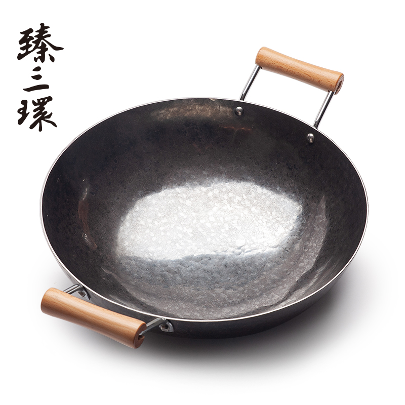 (Pre-sale)Zhen Sanhuan Zhangqiu hand-made iron pot is not easy to stick to the pan uncoated wok round old-fashioned double-ear wok