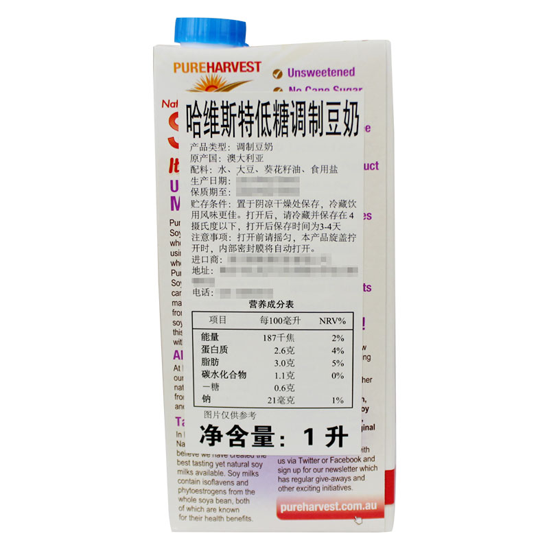 Australia imported Havist low sugar ready-to-drink soy milk drink 1L Jiangsu, Zhejiang and Shanghai full 2 boxes