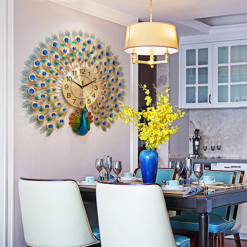 Peacock wall clock living room modern creative clock European style silent bedroom wall clock home quartz clock phoenix clock