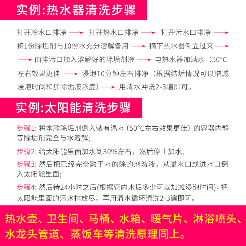 Citric Acid Food Grade Descaling Agent Water Heater Solar Piping Cleaning Agent Water Scale Water Tank Kettle Cleaner