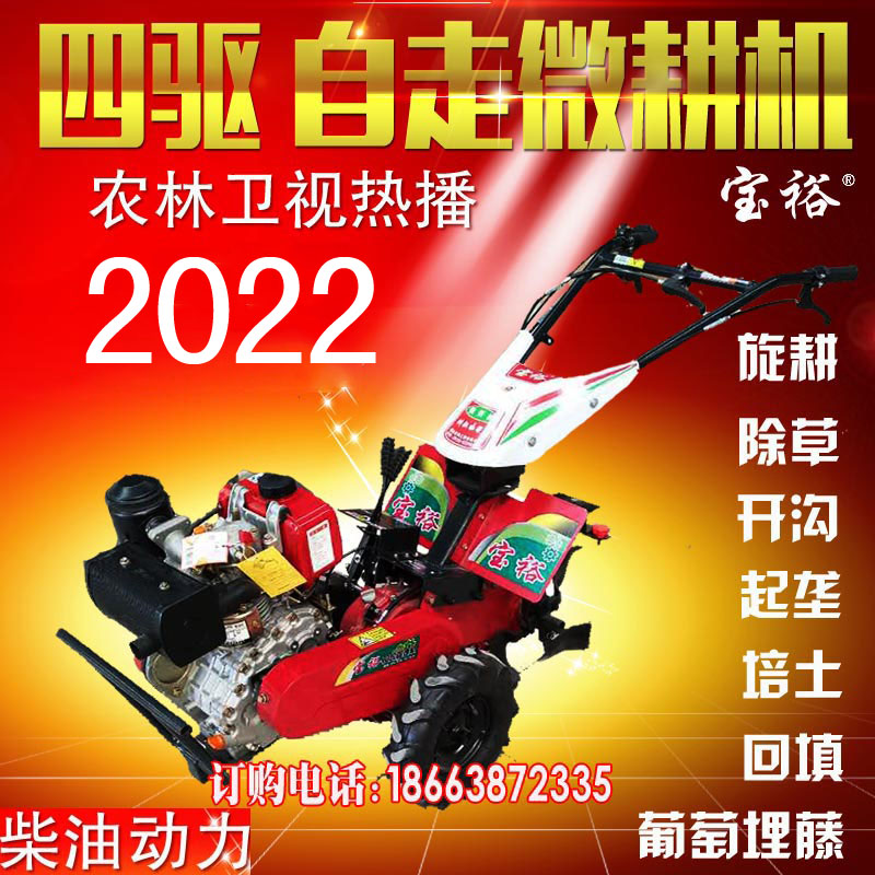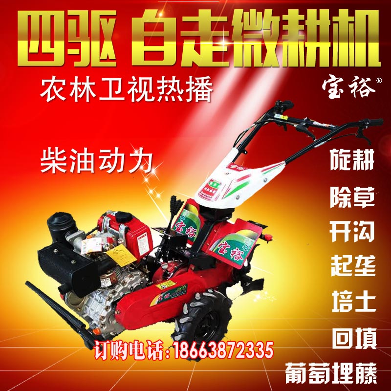 Diesel four-wheel drive micro-cultivator Baoyu self-propelled rotary cultivator cultivator trenching machine weeding and cultivating soil tractor ripper