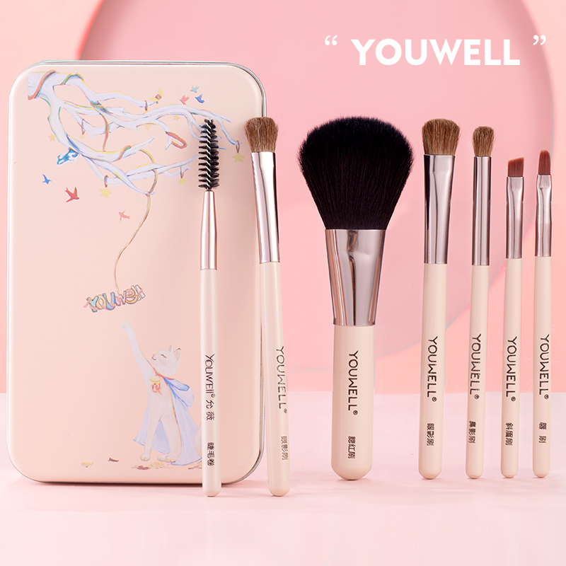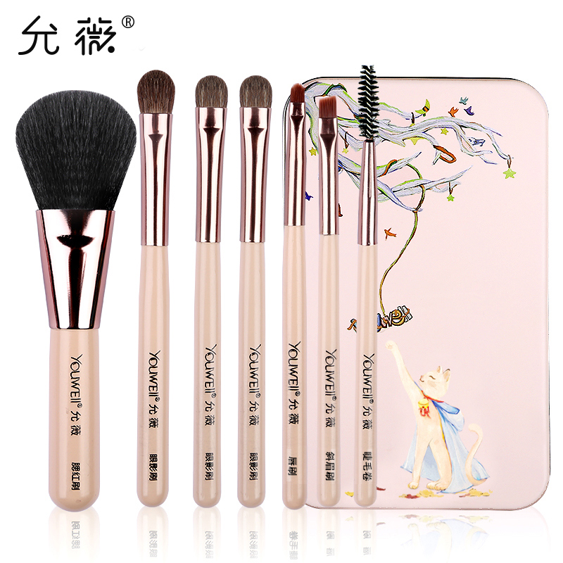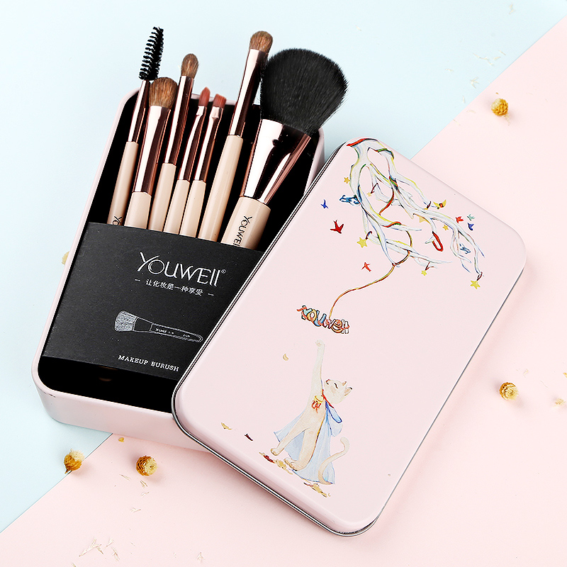 7 small nude makeup brushed iron boxes (3 brushed brow color random hair) 7 small nude makeup brushed deer women's iron boxes (1 mascara color random hair) 7 kitty girls