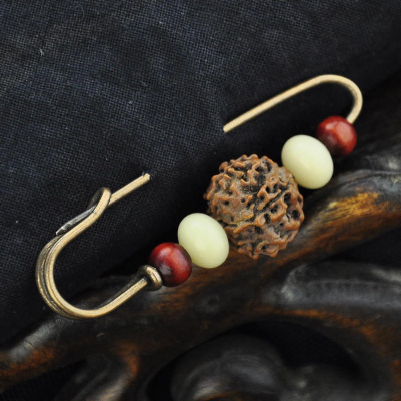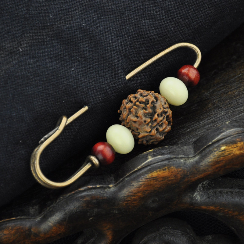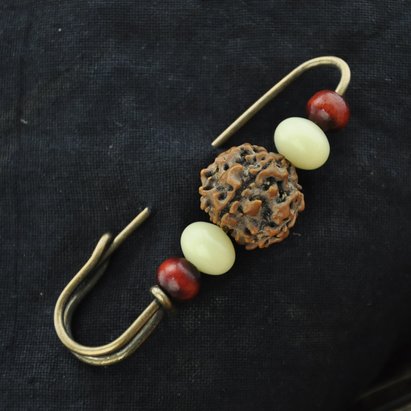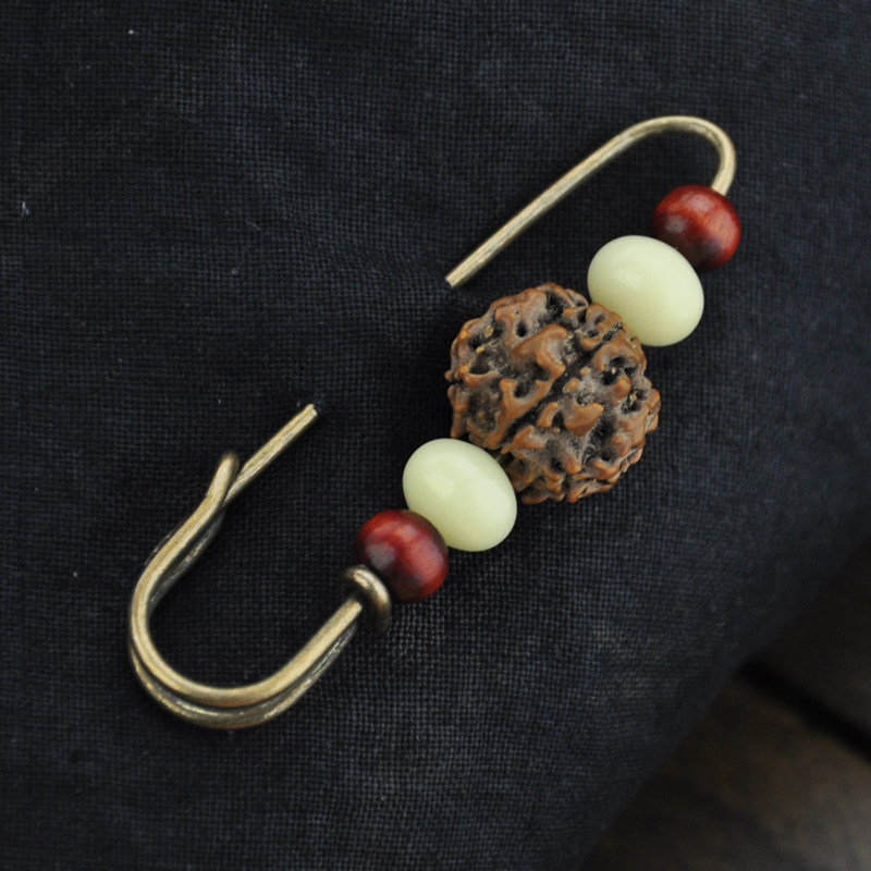 Vintage original Vajra white jade Bodhi sandalwood Buddha beads brooch pin sweater open to ward off evil spirits handmade jewelry