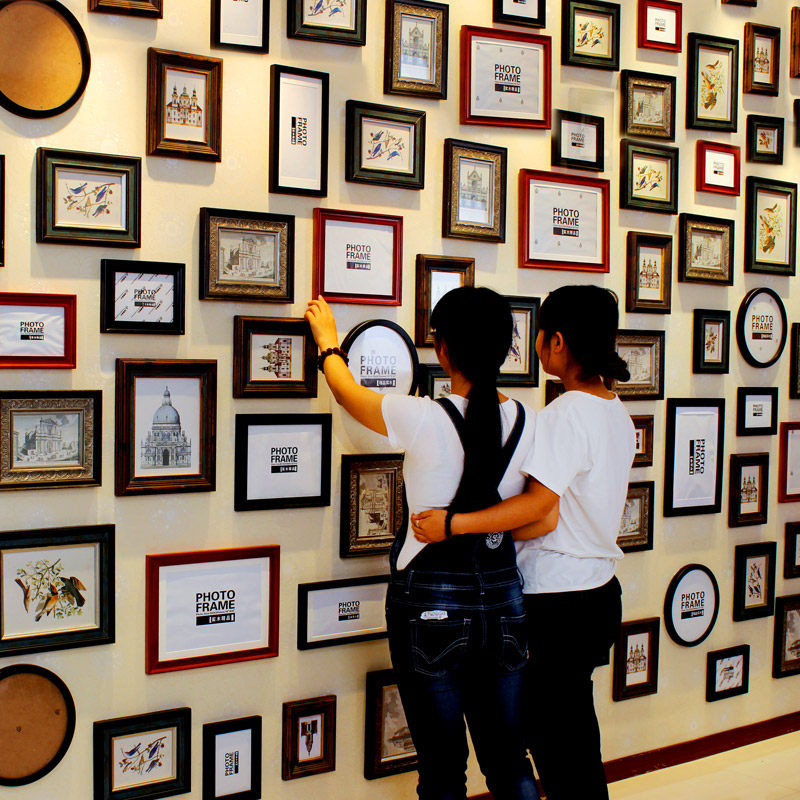 Luxurious Retro Solid Wood American Photo Wall Living Room Eu Style Photo Enterprise Hanging Wall Oversized Combined Villa Decoration Painting