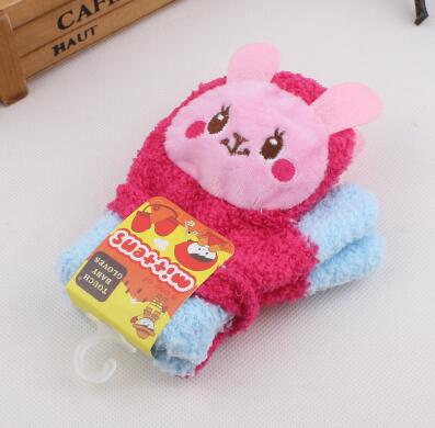 Cartoon children's gloves 6 months-3 years old baby lanyard bag finger gloves Infant coral velvet will call sub gloves