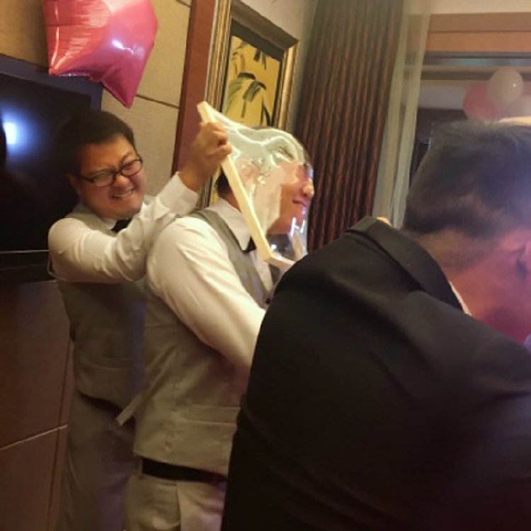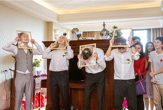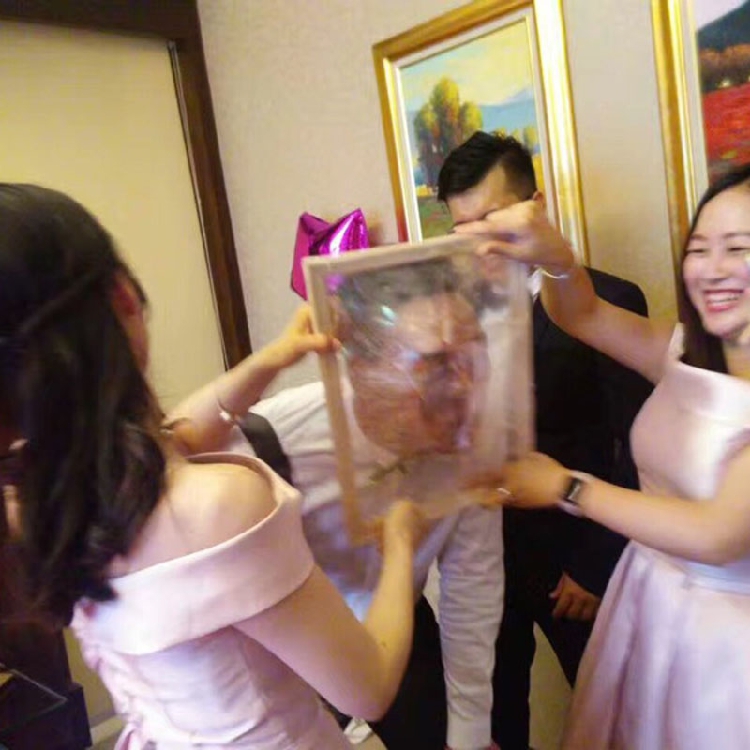 Pick up the pro game props block the door Block the door game card The whole groom brother group Cling film unrecognizable photo frame
