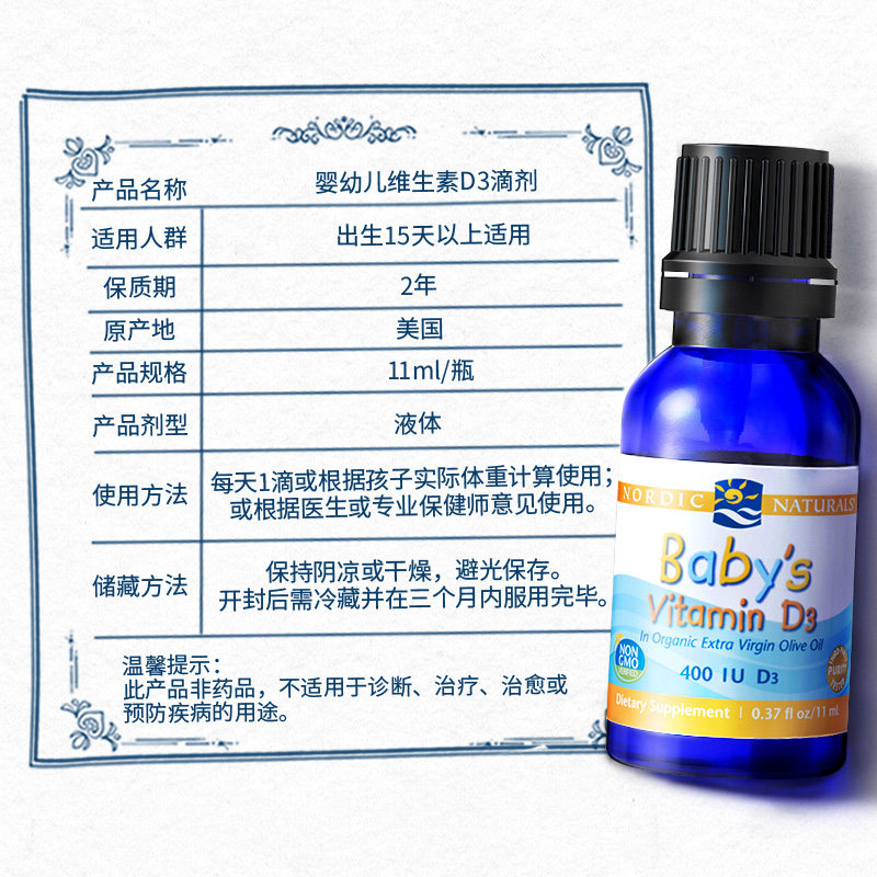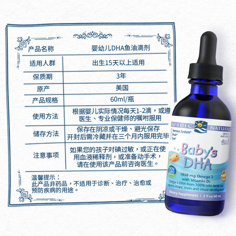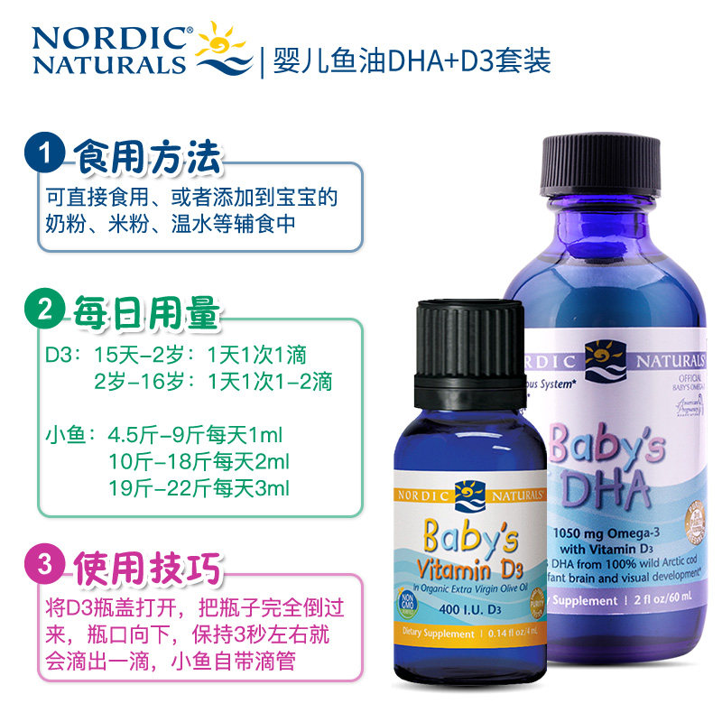 Nordick Norwegian fish baby vitamin D3 11ml newborn infants and young children baby DHA fish oil 60ml