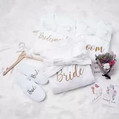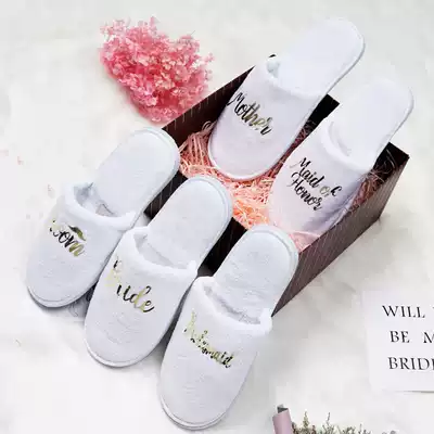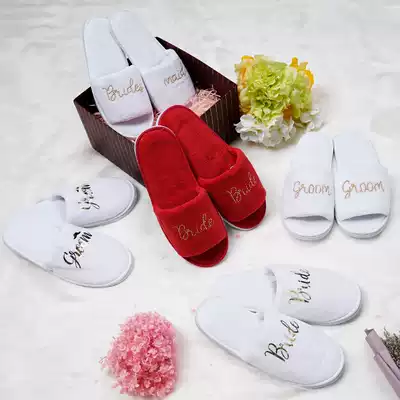 Foreign trade White bride gown slippers wedding party groom bridesmaid autumn and winter couple bedroom home slippers