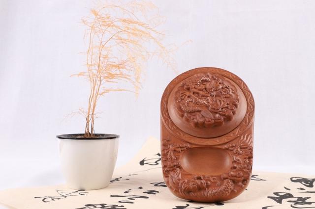 Kiln Change Red Clay mud Clay Stone Ink Stone suit with lid suit Wenfang Four Treasure Supplies