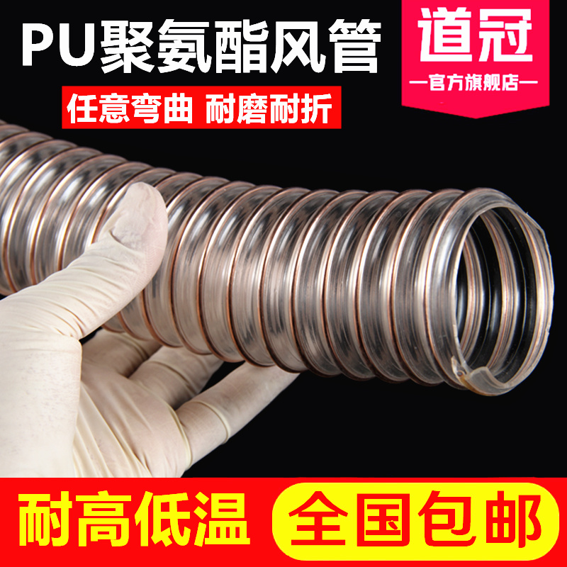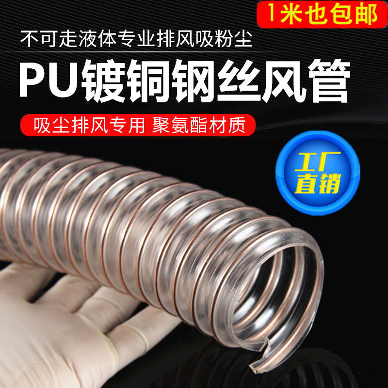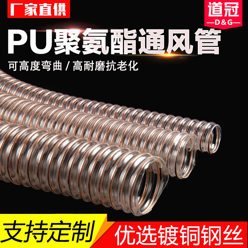 PU polyurethane air duct Copper-plated steel wire hose Transparent pu vacuuming sawdust telescopic ventilation duct wall thickness 0 63mm