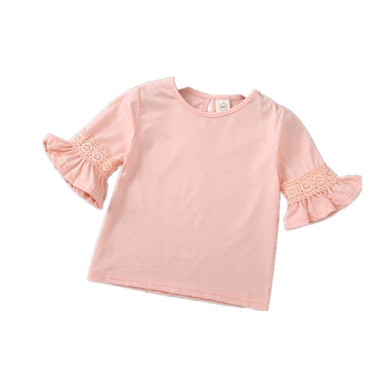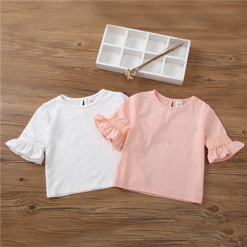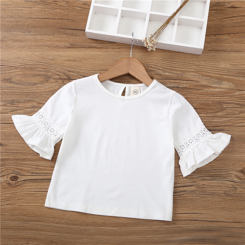 2018 girls' new 3T-shirt summer cotton 5 fashion bottoming shirt trumpet sleeve children's top lace comfortable and breathable
