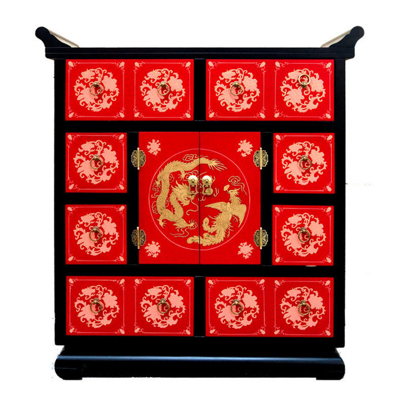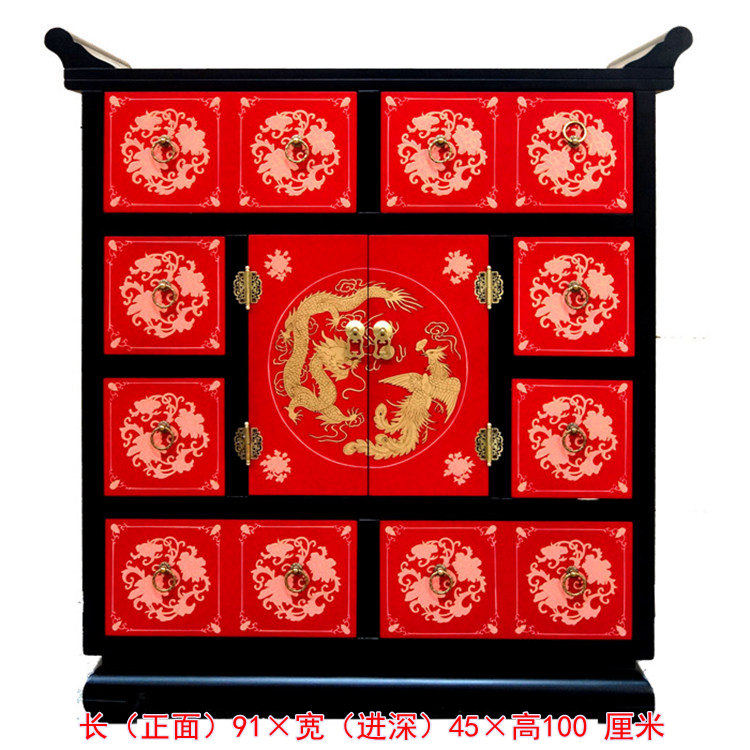 Yangzhou paint dragon fenghai pumped two doors mask decoration cabinet lacquer art new Chinese classical home solid wood furniture
