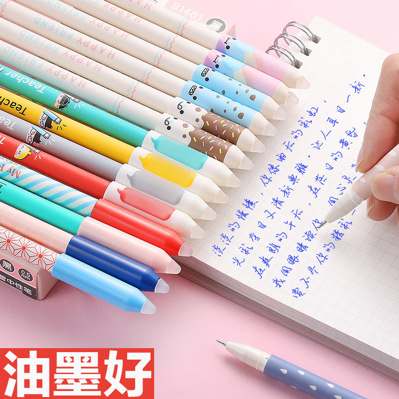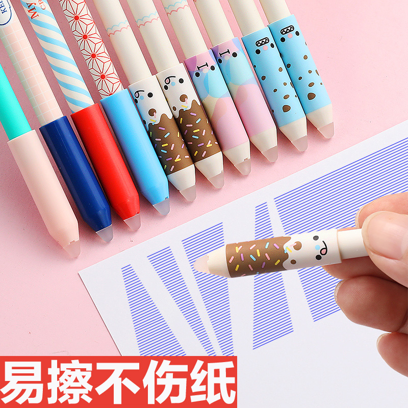 0 5 Full needle tube cartoon crystal blue 6 pens 10 refills] Send erasable rubber