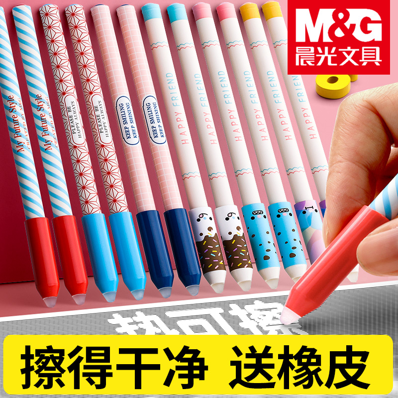 Morning light Erasable pen Grinding easy to wipe Magic rub crystal blue erasable refill for primary school students Black 0 38 female 0 5mm blue Black ink blue hot erasable press female 3-5 grade gel pen