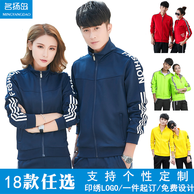 Spring and autumn sportswear suits for men and women students, school uniforms, long-sleeved overalls, printed school uniforms, custom embroidery logo