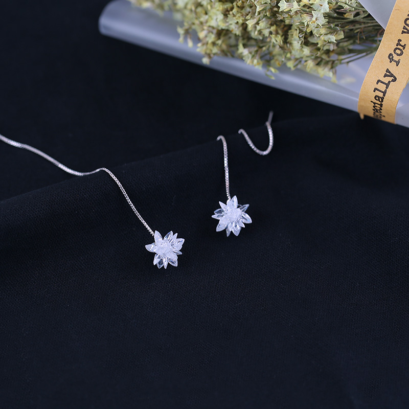 S925 sterling silver crystal flower earrings female Korean temperament long version tassel snowflake earrings super fairy net red with earrings