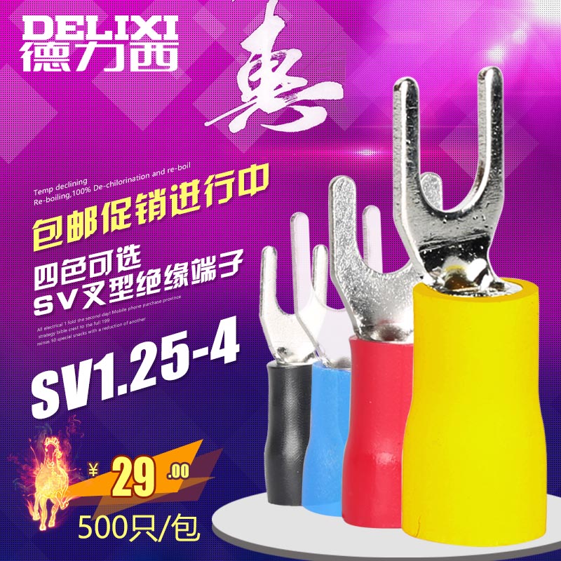 Delixi 1 5 square pre-insulated end SV1 25-4 fork type Y type U type terminal block copper nose 500pcs