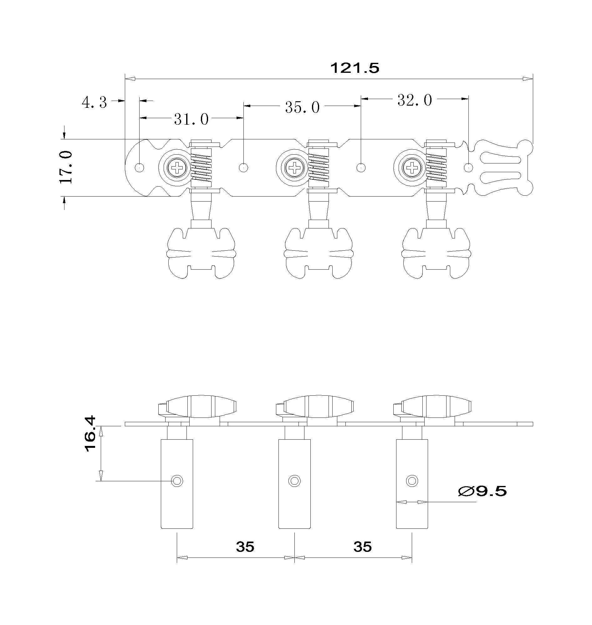 White pearl flower head plastic column string button long three-position triple string button classical guitar button string quasi-Winder gold chrome