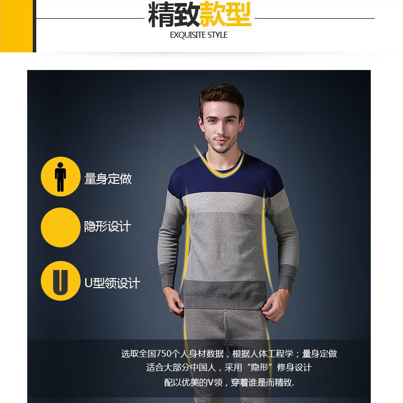 Feiyun Knight Men Warm Liftwear and thickening Youth Fixation Round Tidy Sweater Cotton Suite