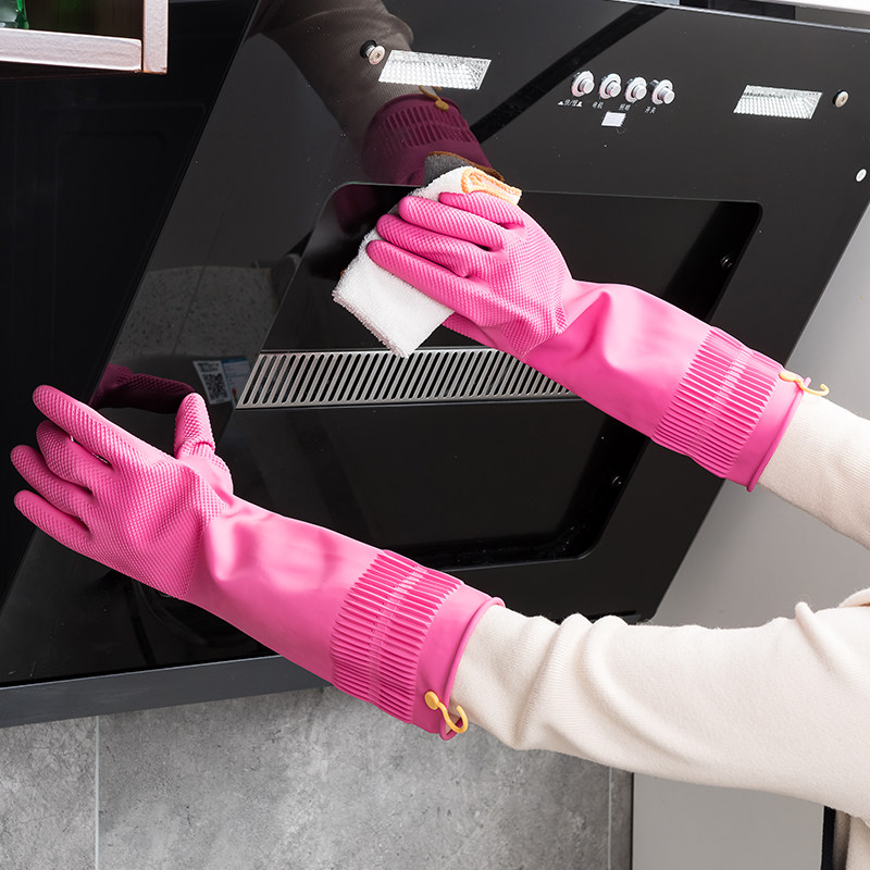 Kitchen dishwashing long rubber gloves female winter durable housework cleaning clothes waterproof rubber gloves