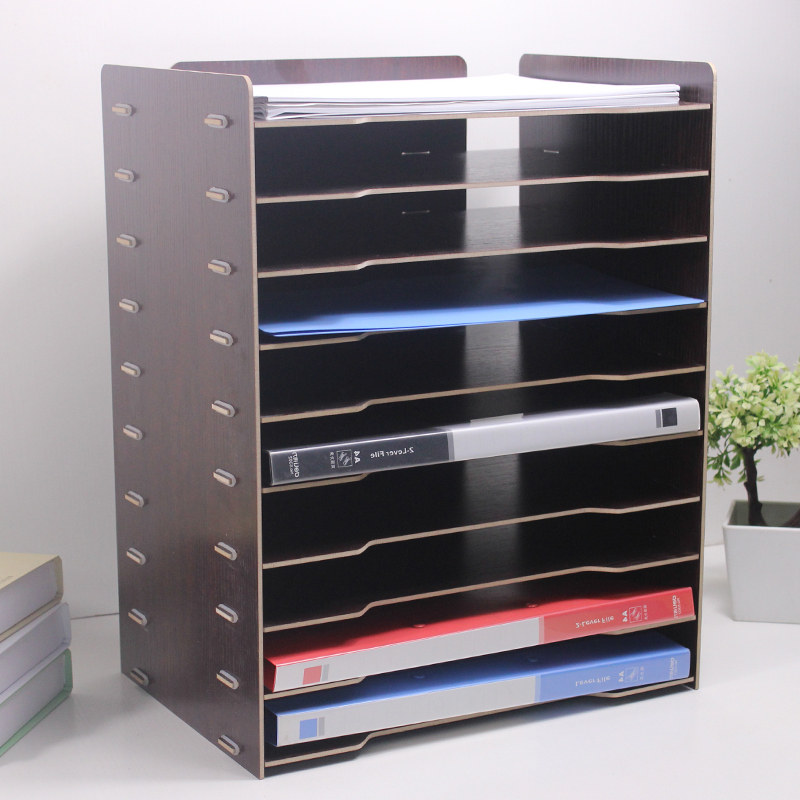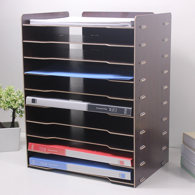 File rack Wooden creative file shelf desktop storage multi-layer data rack office supplies student bookshelf