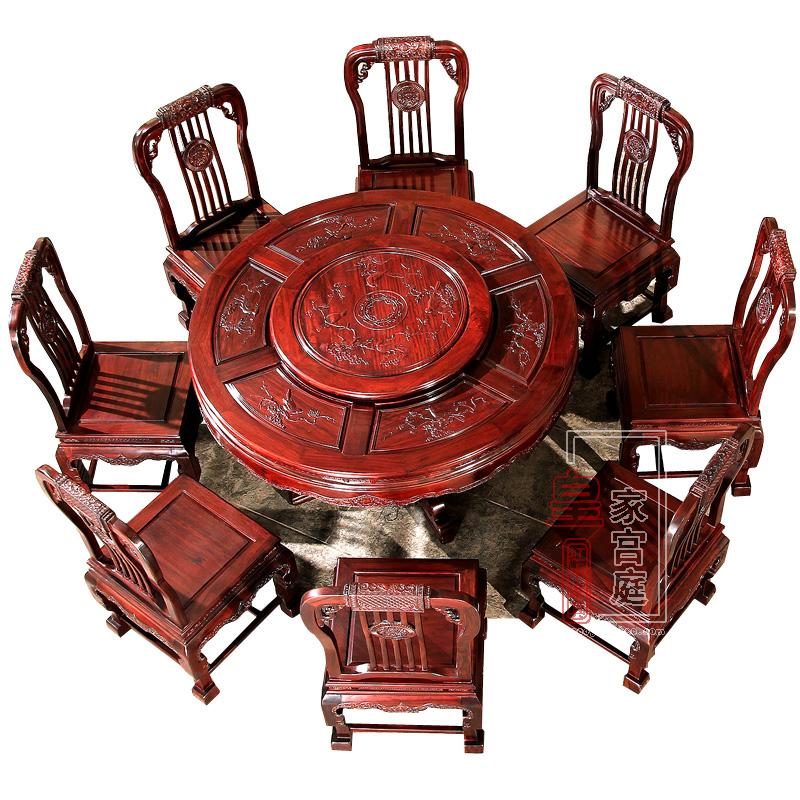 East African sourwood dining table mahogany round table dining table and chair combination all solid wood Chinese restaurant dining table 1.38 meters round table