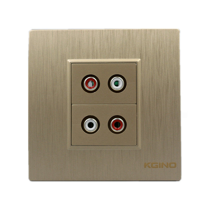 Type 86 free welding of two bits AV audio socket drawing champagne gold red white double-hole lotus audio socket panel