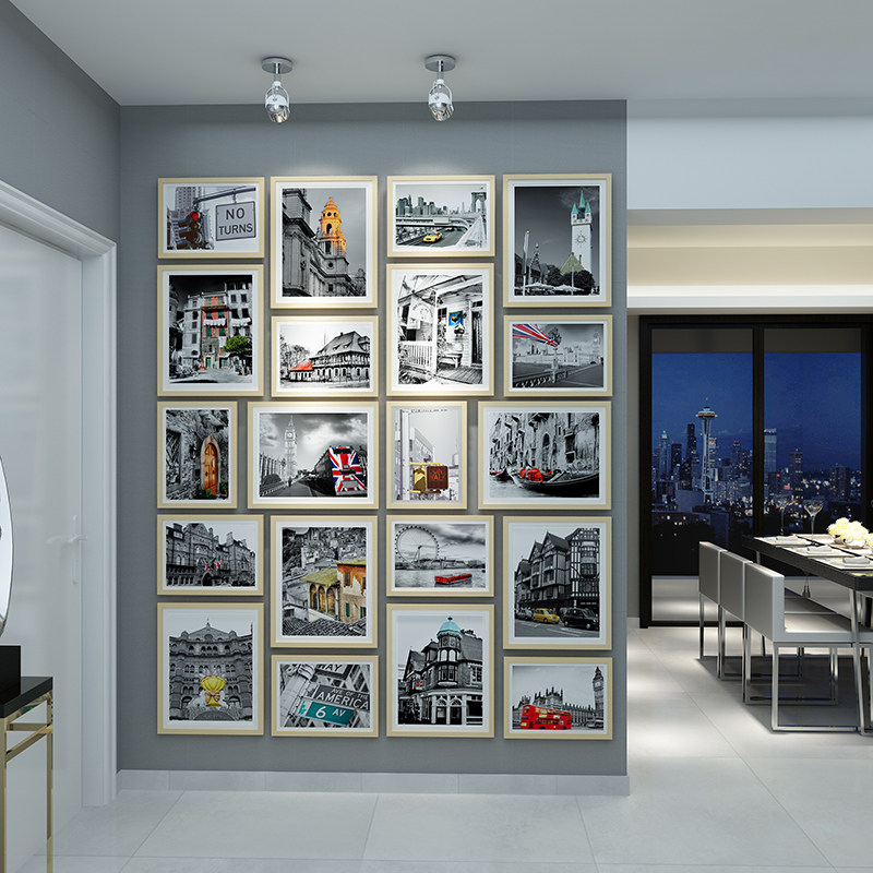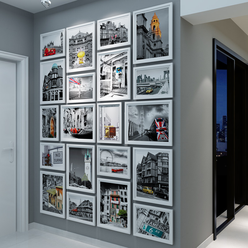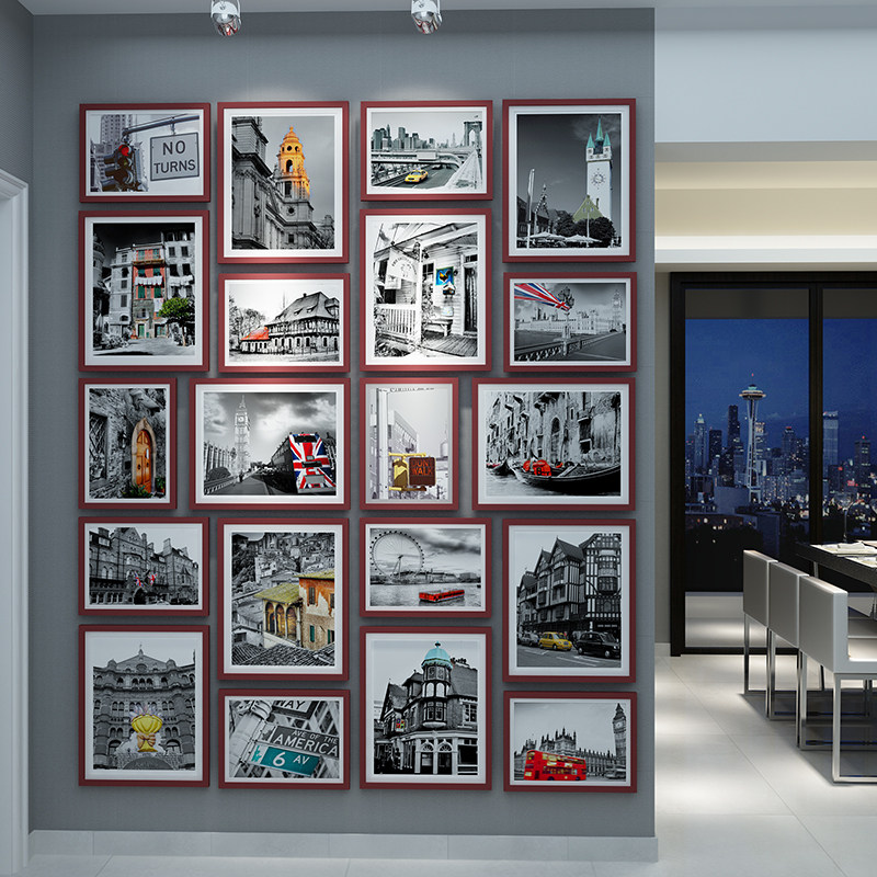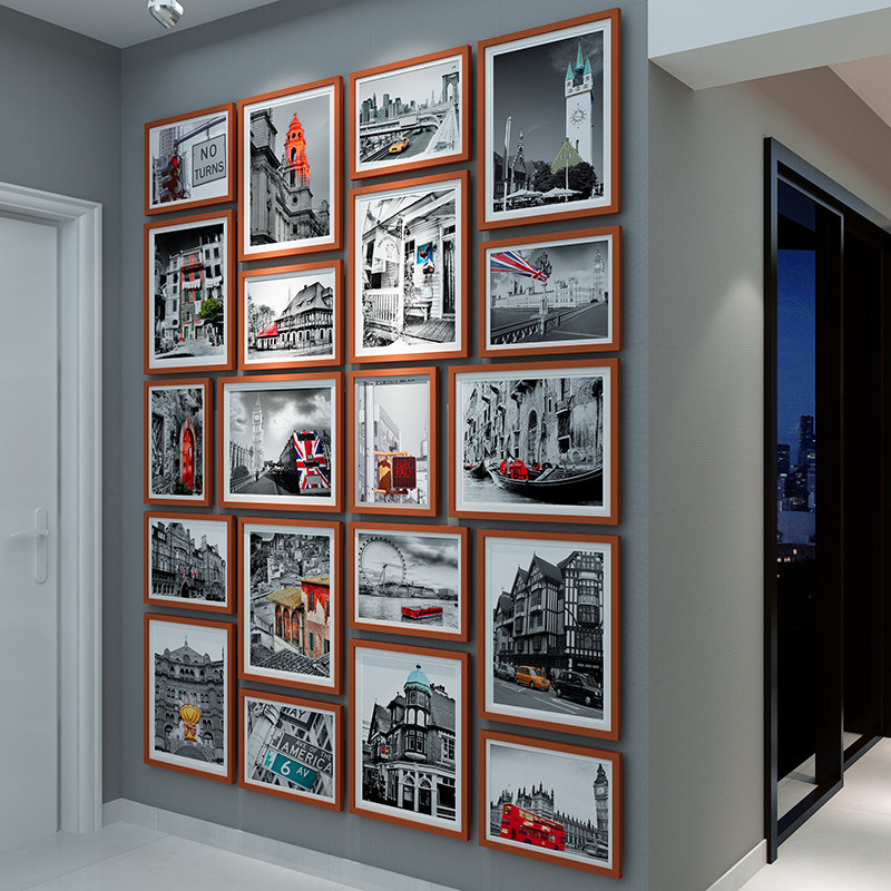 Solid wood large frame photo wall Creative enterprise company culture wall Aisle entrance Living room photo wall Photo frame wall combination