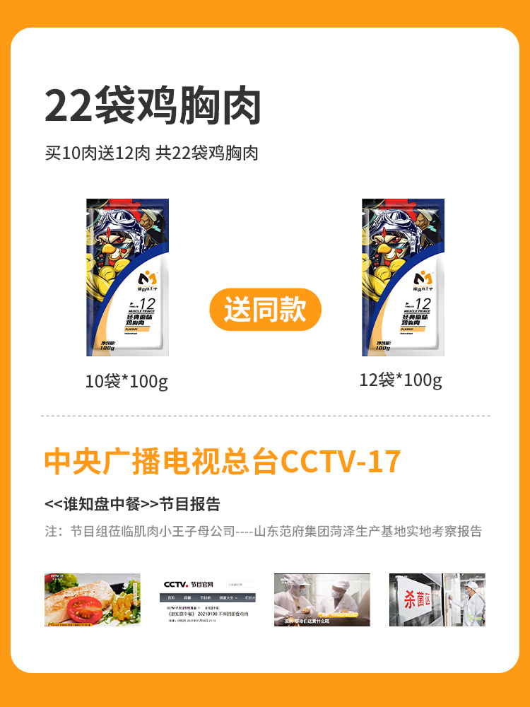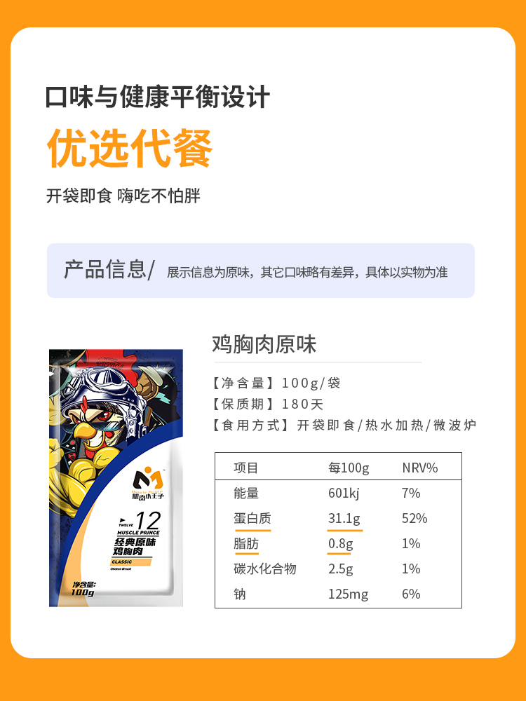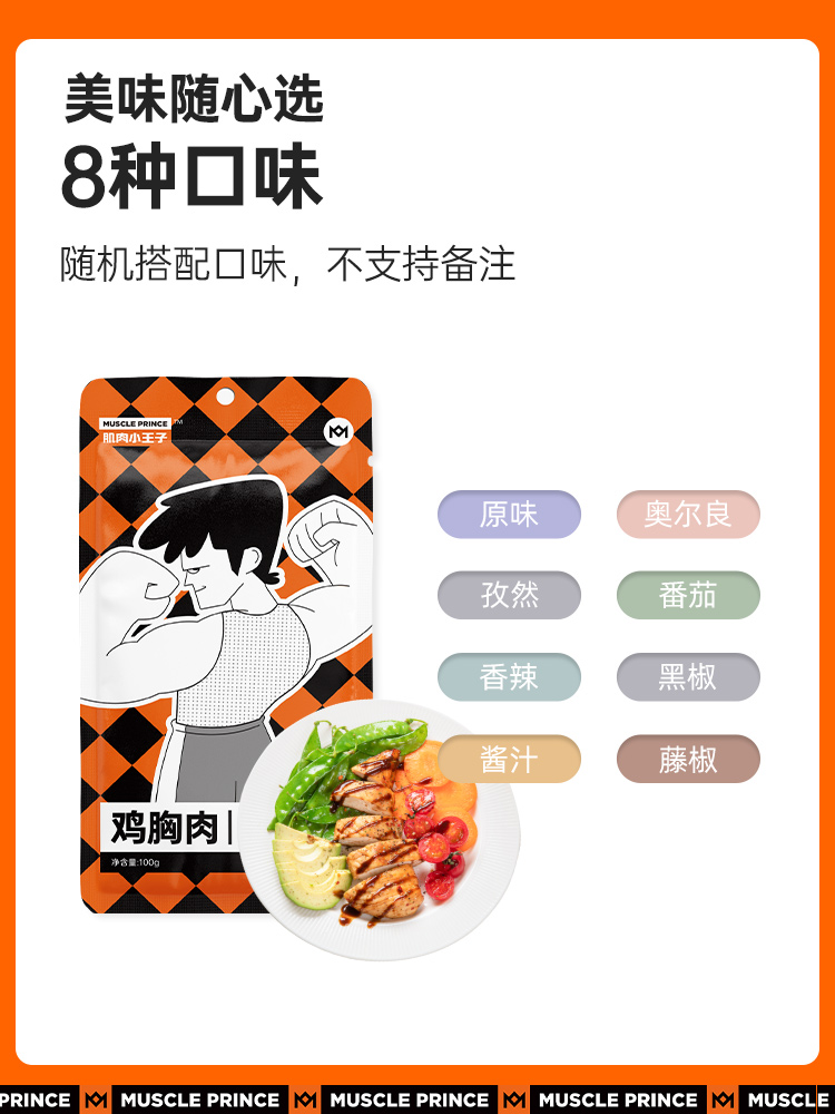 (22 bags of meat)Muscle Little Prince chicken breast Fitness meal replacement Ready-to-eat chicken Instant light food Low-fat snacks
