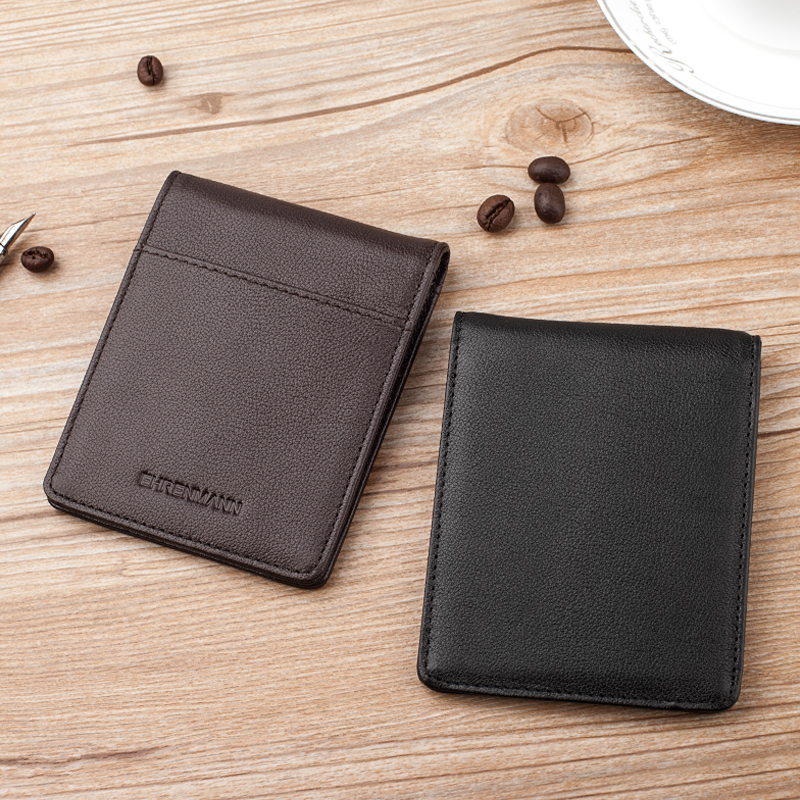 (clear cabin) genuine leather men's wallet thin head layer cow leather small wallet large capacity youth short clip money clip