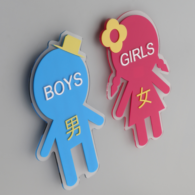 Cartoon kindergarten boys and girls bathroom toilet Organic acrylic logo toilet indication laser sign