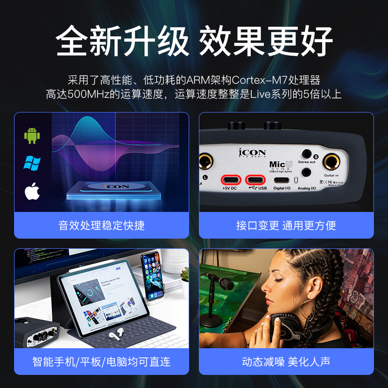 Eken ICON MicU Specialty external link sound card live phone K song yelling mai computer recording full set of equipment