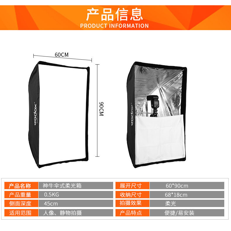 Shen Niu soft light box Umbrella soft light cover Photographic flash cover Portable folding rectangular light box Multi-size optional