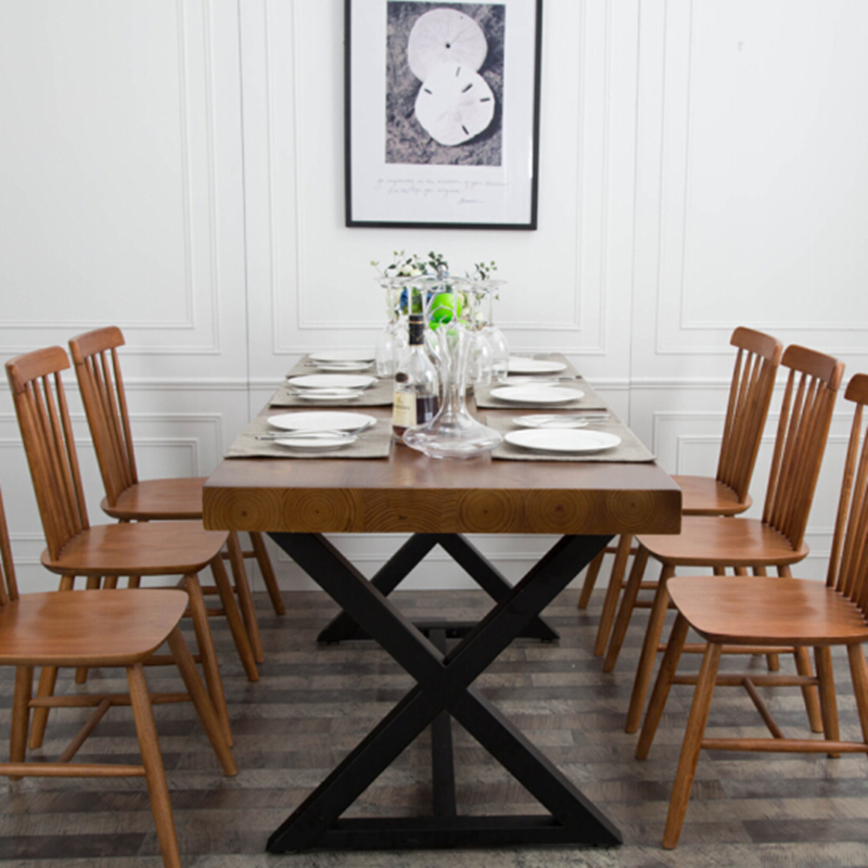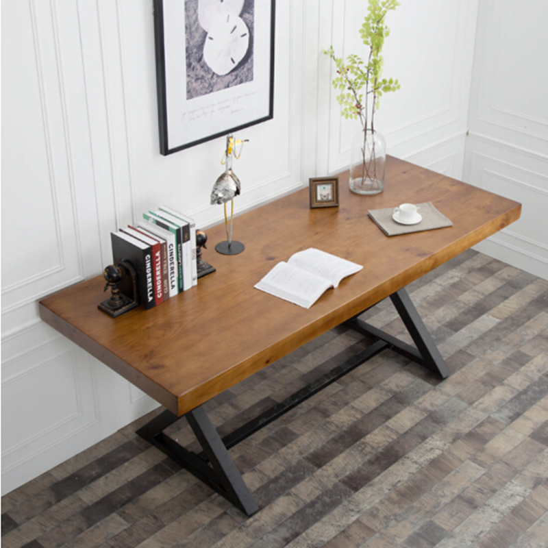 Solid Wood Large Plate Table American Countryside Iron Art Dining Table And Chairs Meeting Table Strip Office Furniture Office Furniture Desk Home