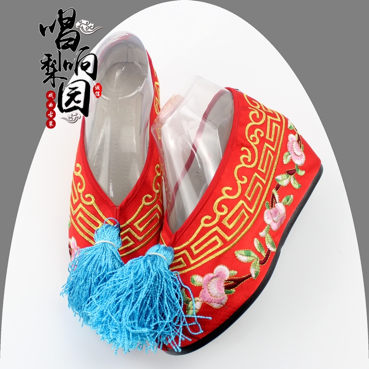 Singing the Pear Garden Show and Wedding Shoes Women Chinese Bridal Shoes Red Heels with Pregnant Woman Inner Heightening Shoes Embroidered Shoes Opera Color Shoes