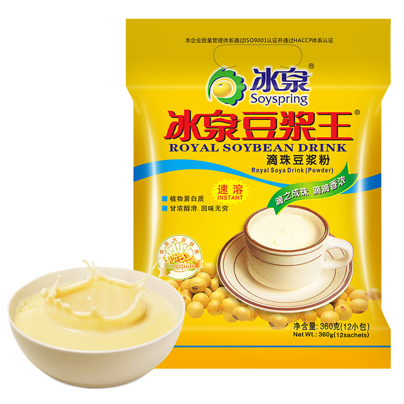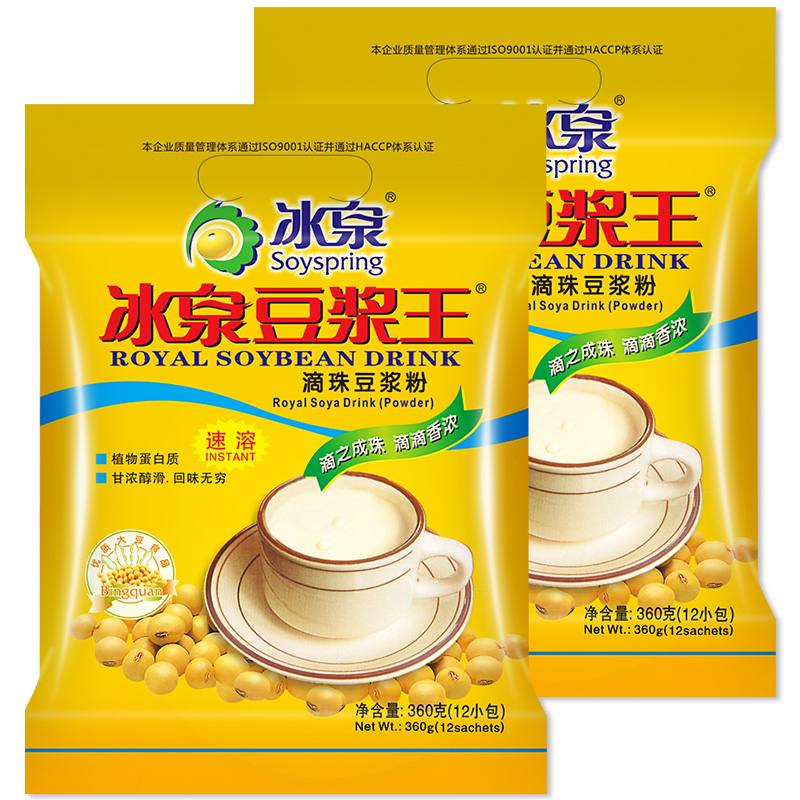 Ice Springs Soybean Milk King 360g * 2 Pure Bean Powder Soy Milk Powder Nutritional Breakfast Rinderless drinks Meal Powder Food Bean Powder