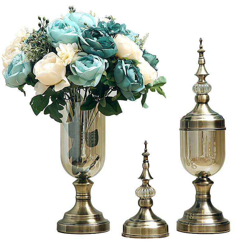 European and American glass vase simulation flower plug in modern minimal decoration dining table TV cabinet opening