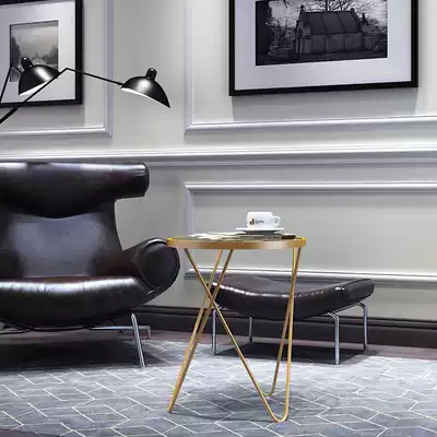 Nordic simple wrought iron glass tea table Golden side several living room bedroom creative bedside table small round table