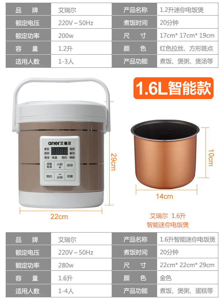 Ariel 1 6Lrmier Remier AR-16T Mini Electronic Pot 1-2 People Smart Student Steam