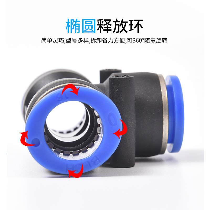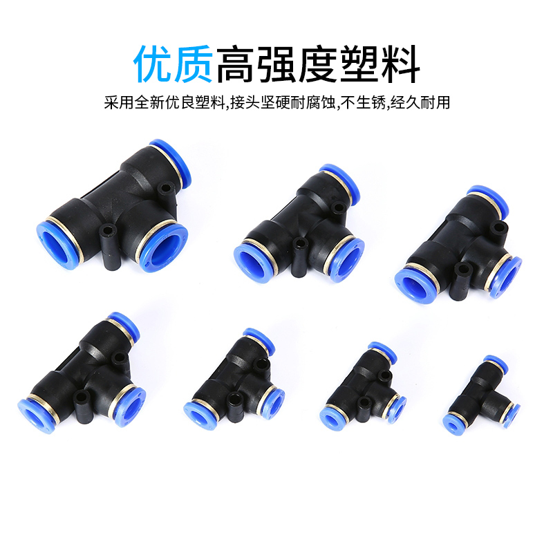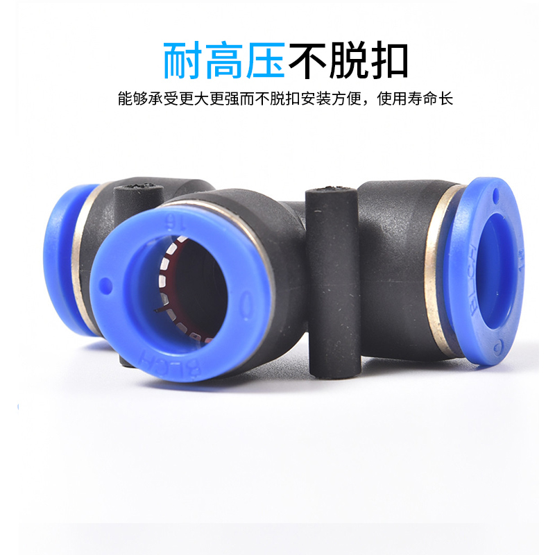 High-end high-quality joint plastic T-type three-way PE4 6 8 10 12 14 16 one into two gas joints one point two
