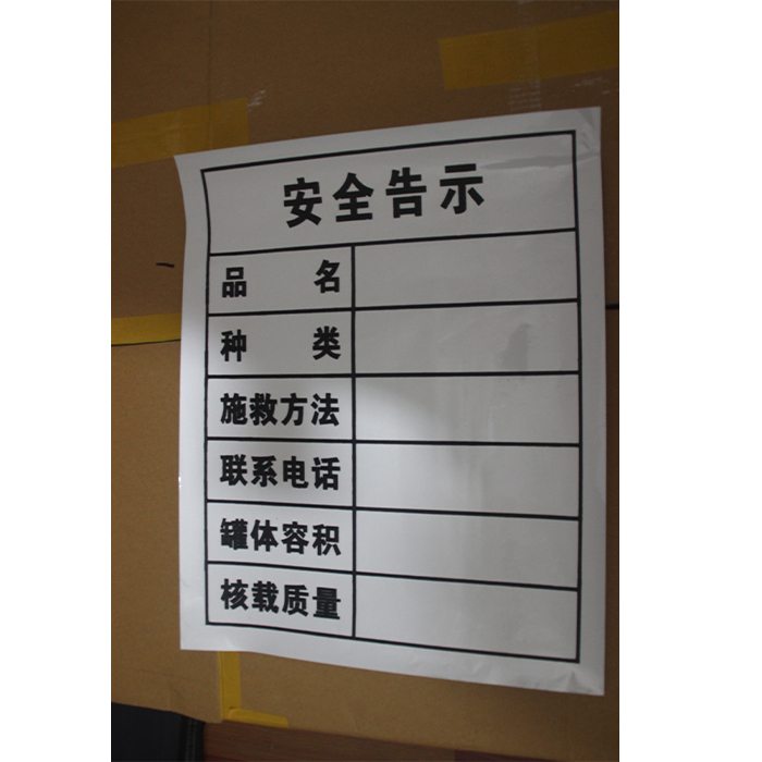 Safety Notice 40 * 50 No Dry adhesive sticker Safety Notice 30 * 40 No Dry adhesive Flammable Liquid 3 (aluminum plate with glue) flammable liquid 3 (without dry adhesive sticker) flammable gas 2 (no dry adhesive sticker)