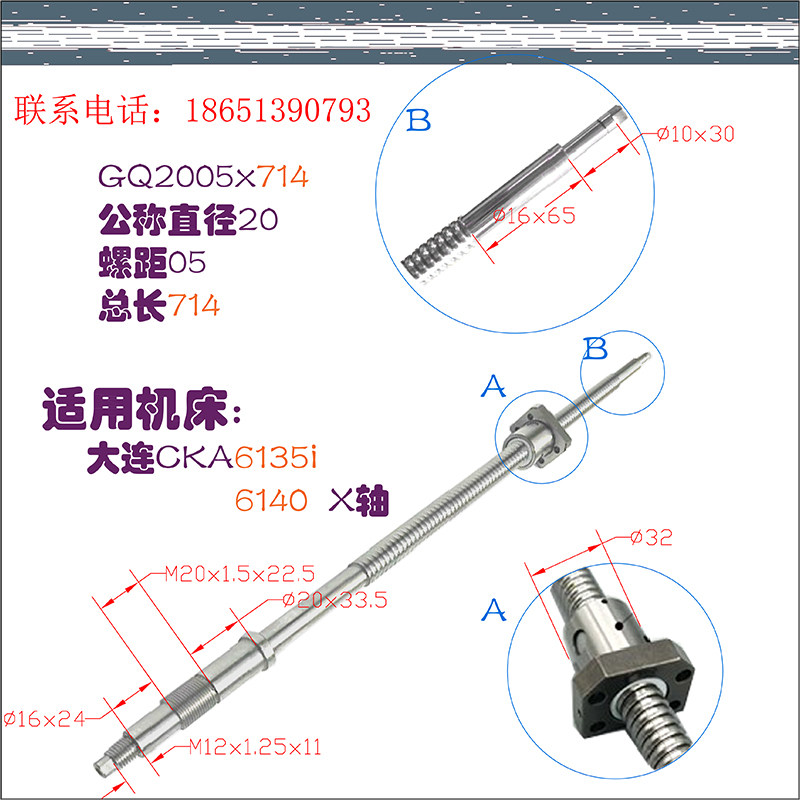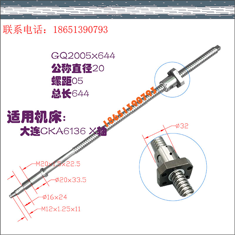 Dalian CNC lathe center support screw CKA6136 6140 CNC lathe xz axis grinding ball screw